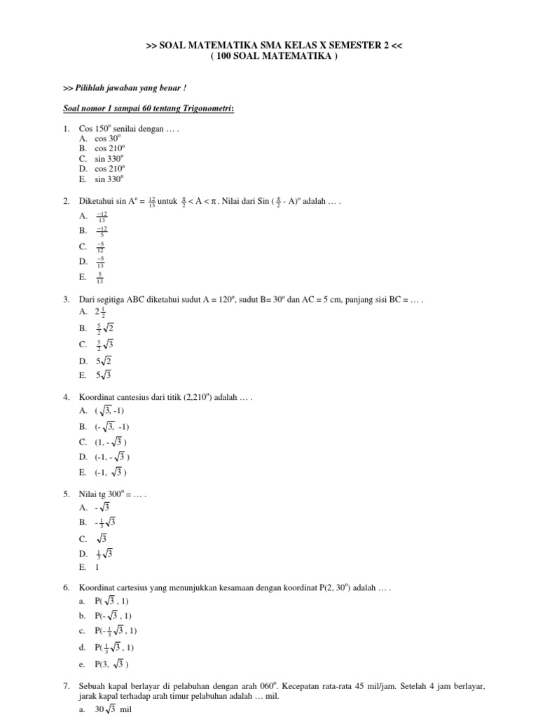 / Soal Dan Jawaban Pat Matematika Peminatan Kelas 11 Semester 2 : Soal Sma Kls X Matematika Semester 2 Peminataan Jawabanku Id - Maybe you would like to learn more about one of these?