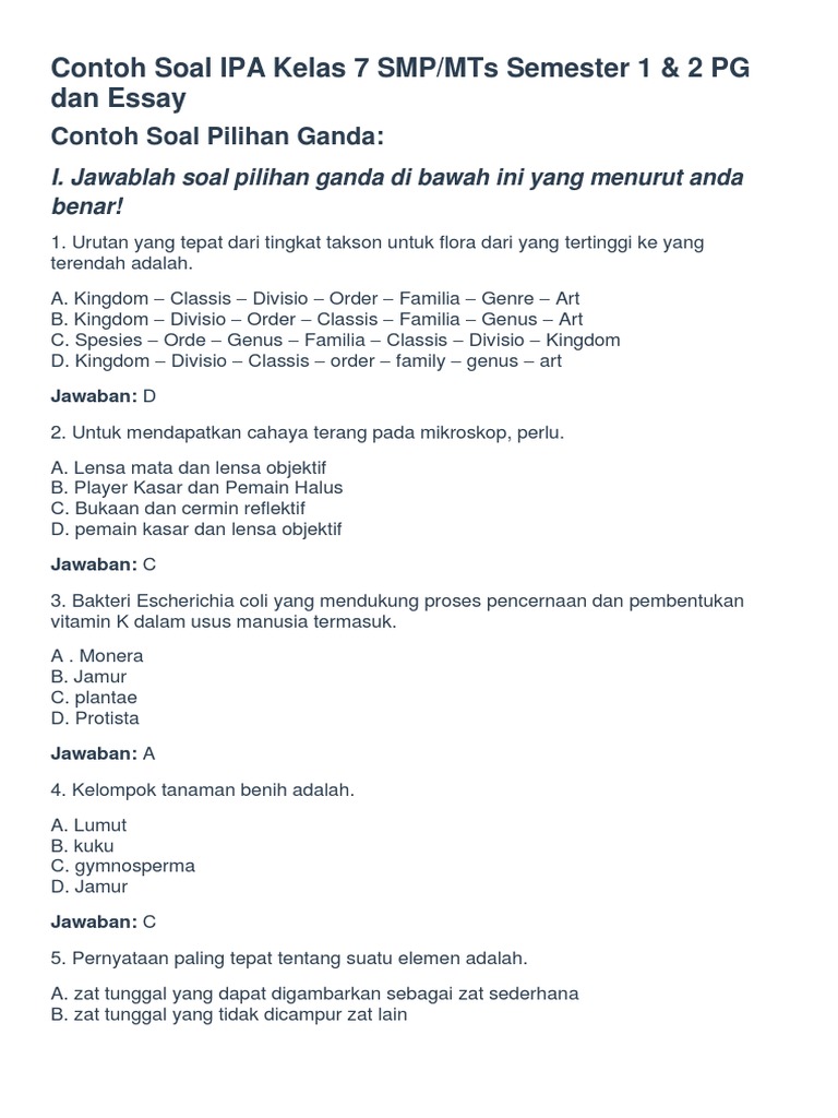 Soal Essay Ipa Kelas 7 / Soal Essay Klasifikasi Materi Dan Perubahannya Kelas 7 Jawabanku Id : Kali ini kakak telah selesai menyusun beberapa kumpulan soal uas untuk semua mata pelajaran fisika matematika bahasa indonesia ips pendidikan agama islam seni budaya bahasa inggris ipa pkn penjaskes yang dikumpulkan dalam pembahasan semester.. Soal uts essay bahasa indonesia kelas 7 semester 1.jawaban a b dan c salah semua. You'll get 20 more warranty days to request any revisions, for free. Essay paper help 'if you haven't already tried taking essay paper help from tfth, i strongly suggest that you do so right away. Online writing contoh soal essay ipa kelas 7 service includes the research contoh soal essay ipa kelas 7 material as well, but these services are for assistance purposes only. Kumpulan soal ipa kelas 7 semester 1 kurikulum 2013.